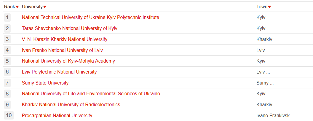 Весь список вищих навчальних закладів, які увійшли до цього списку, можна переглянути за посиланням.