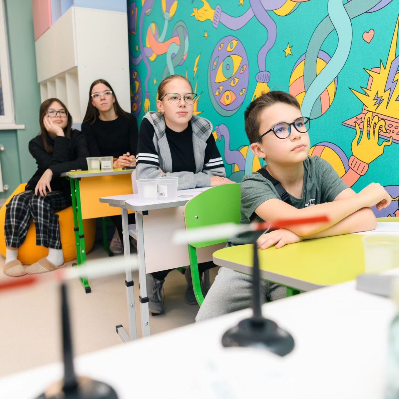 Понад 3 тисячі підручників, а також планшети на ноутбуки, які є в усіх освітніх осередках, роблять класи Школи супергероїв сучасними та зручними. Усі приміщення є безбар’єрними і доступними для людей на кріслах колісних. Дверні отвори відповідають нормам з інклюзивності будівель та закладів освіти. Інтерактивні дошки та айпади обладнані спеціальними програмами, які дають можливості використовувати матеріали в збільшеному форматі або для дітей з урахуванням порушень слуху. Для учнів, які перебувають на лікуванні понад рік, можливо розробити індивідуальний план навчання, оскільки школа має три форми навчання — групові заняття в класі, індивідуальні уроки біля ліжка та дистанційна форма для дітей, які лежать в ізольованих боксах.