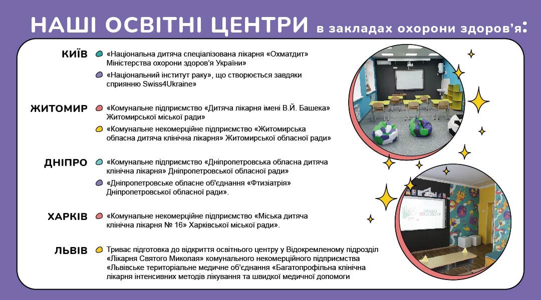 У 2022 році почала функціонувати заснована Кабінетом Міністрів України ДУ «Школа супергероїв», яка організовує та забезпечує надання освітніх послуг у сфері дошкільної та повної загальної середньої освіти особам, які перебувають на стаціонарному лікуванні або яким надається реабілітаційна допомога в закладах охорони здоров’я.