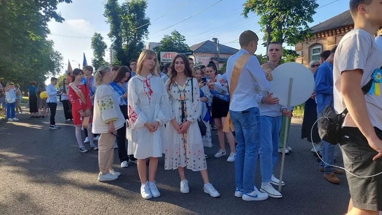 У вишиванках та з прапорами і синьо-жовтими стрічками у Черкасах учні святкували випускний. І при цьому дякували ЗСУ. Під гучні вигуки "Слава Україні" випускники пройшлись вулицею. Вони відмовилися від традиційної урочистої ходи, аби подякувати Збройним Силам України.