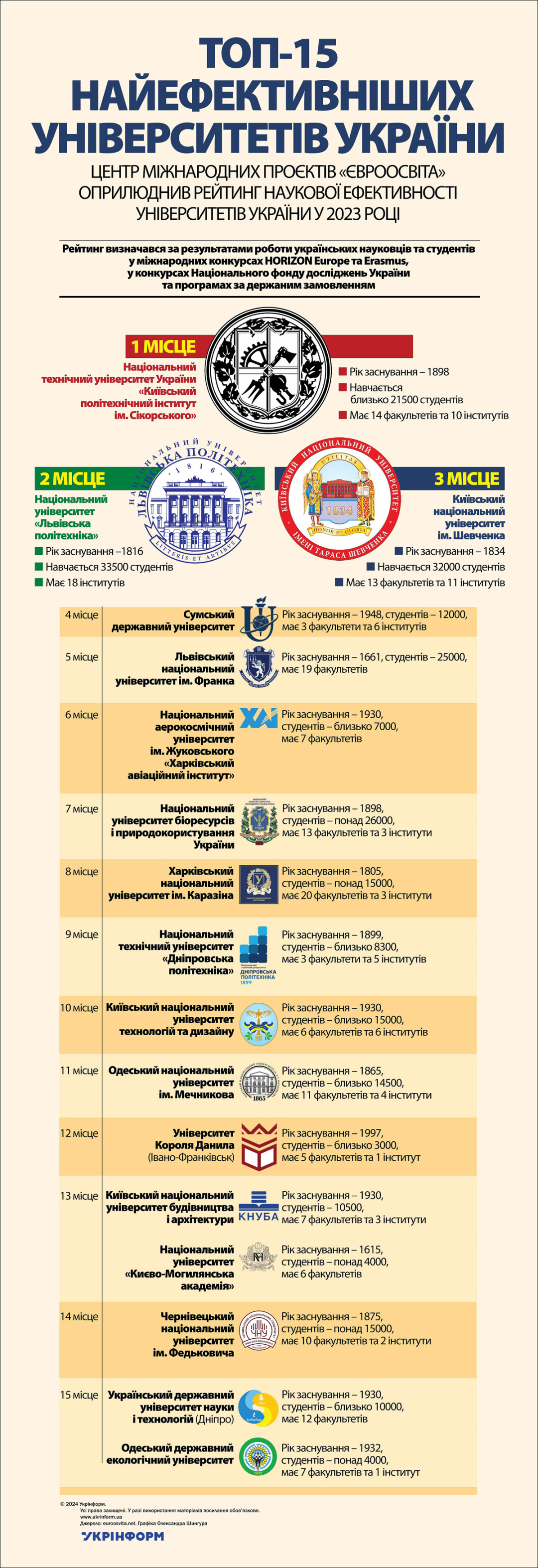 Центр міжнародних проєктів «Євроосвіта» оприлюднив рейтинг наукової ефективності університетів України у 2023 році