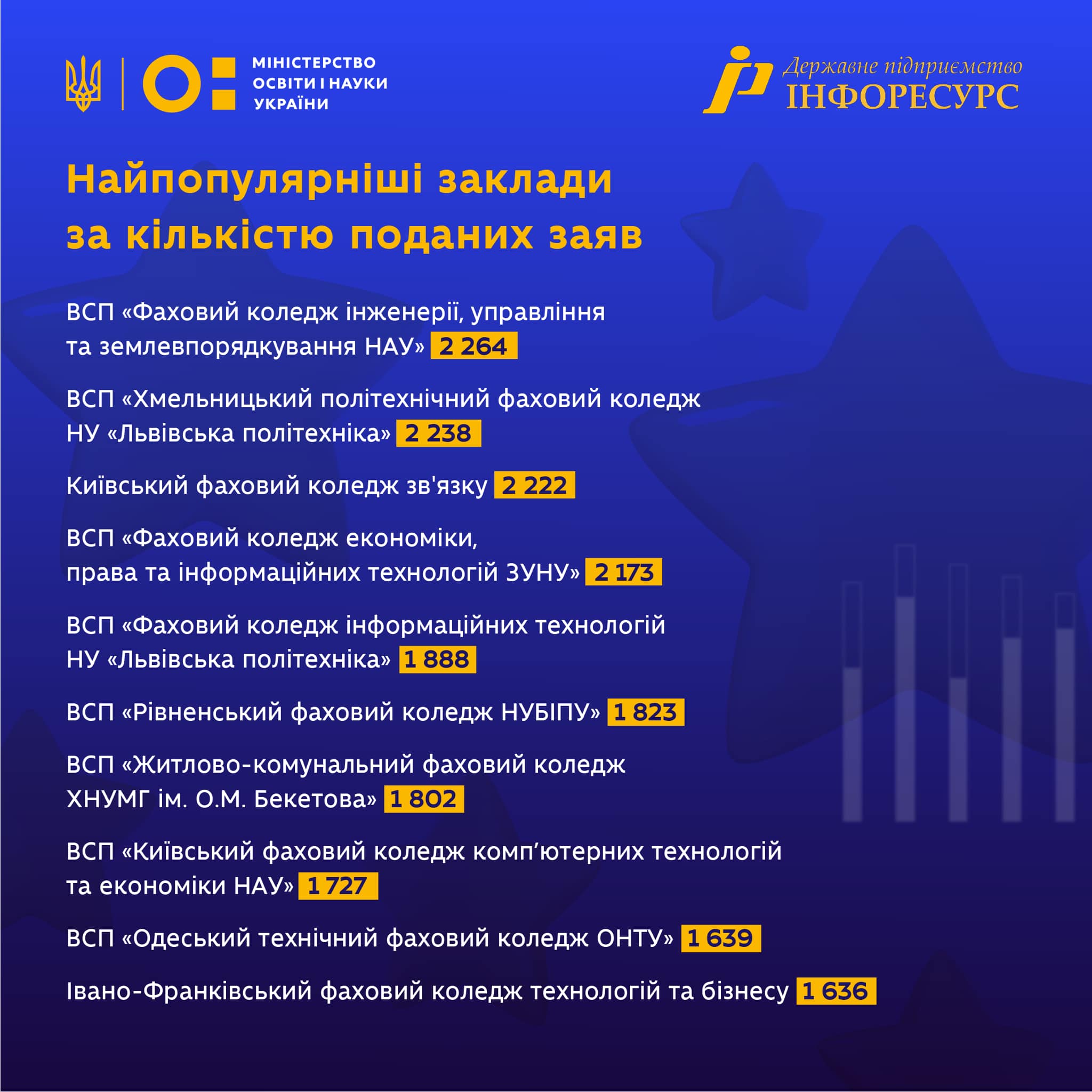 - ВСП "Фаховий коледж інженерії, управління та землевпорядкування НАУ" - 2 264 заяв