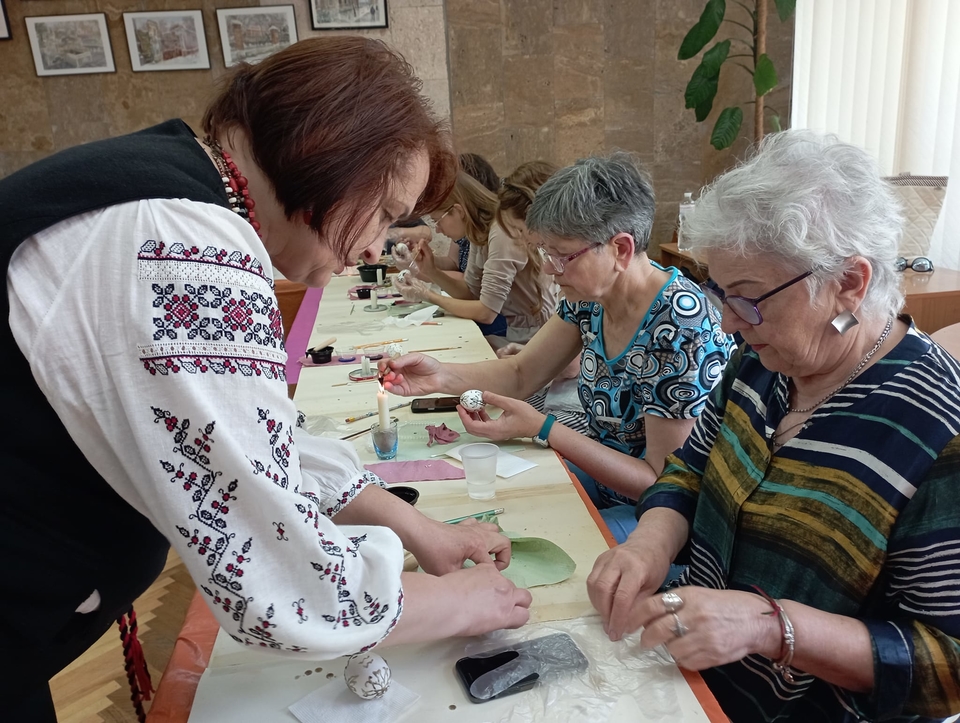 За її словами, творчий день був поділений на дві тематичні частини: "Традиційна писанка" та "Писанка за мотивами таврійського розпису". Тренеркою стала одна з найкращих писанкарок Миколаївщини - заслужена майстриня народної творчості України Тетяна Ульянкіна.