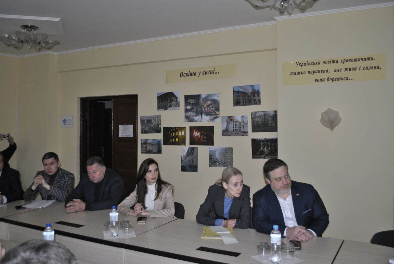 Керівники закладів освіти з окупованих, деокупованих та прифронтових територій поділилися на заході з присутніми, як їхні заклади освіти зачепила ця страшна війна. Представлено фотодокази руйнувань, знищення матеріально-технічної бази. Але усі вони продовжують освітній процес дистанційно, змогли успішно здійснити прийом нових здобувачів освіти, нехай і не в рідних стінах.