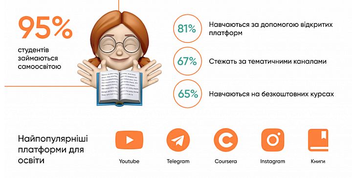 95% студентів займаються самоосвітою, де вдосконалюють практичні скіли зі своїх дисциплін.