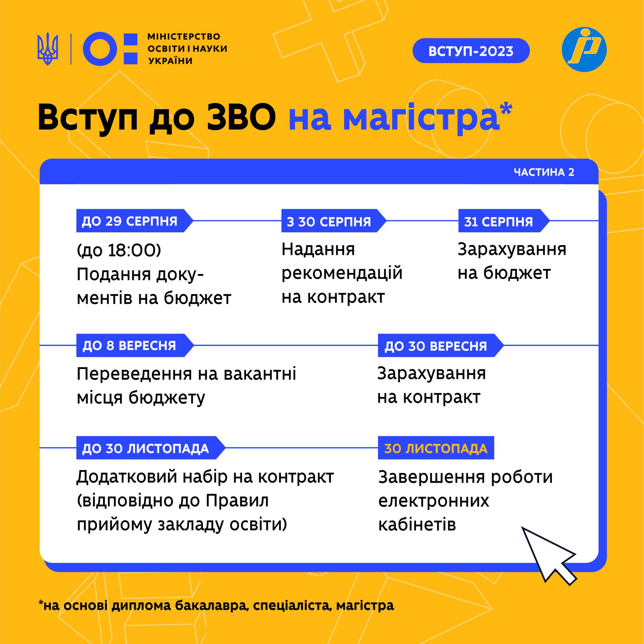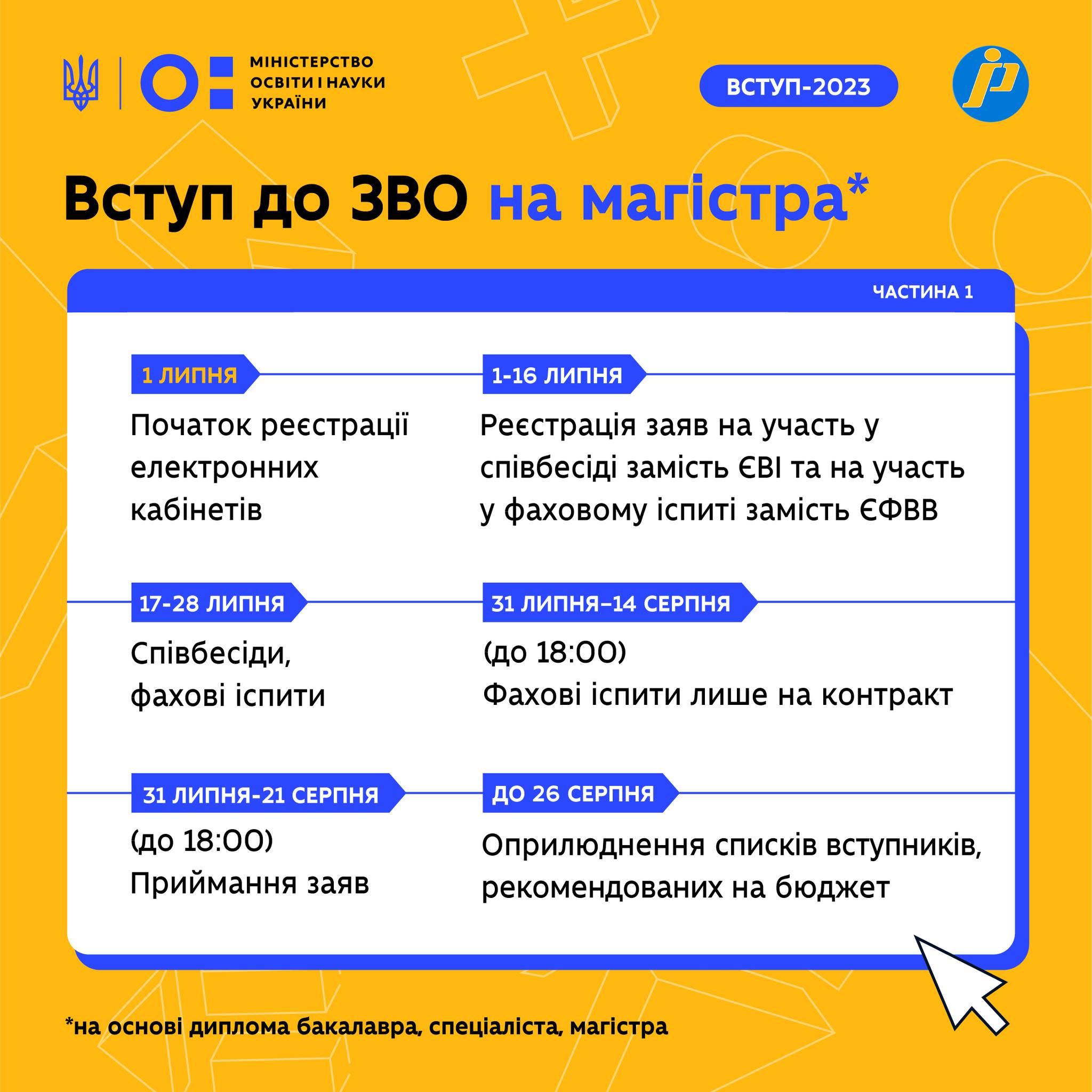 З 1 липня розпочинається головний етап вступної кампанії для майбутніх магістрів. У МОН підготували інфографіку про головні дати та послідовність дій.