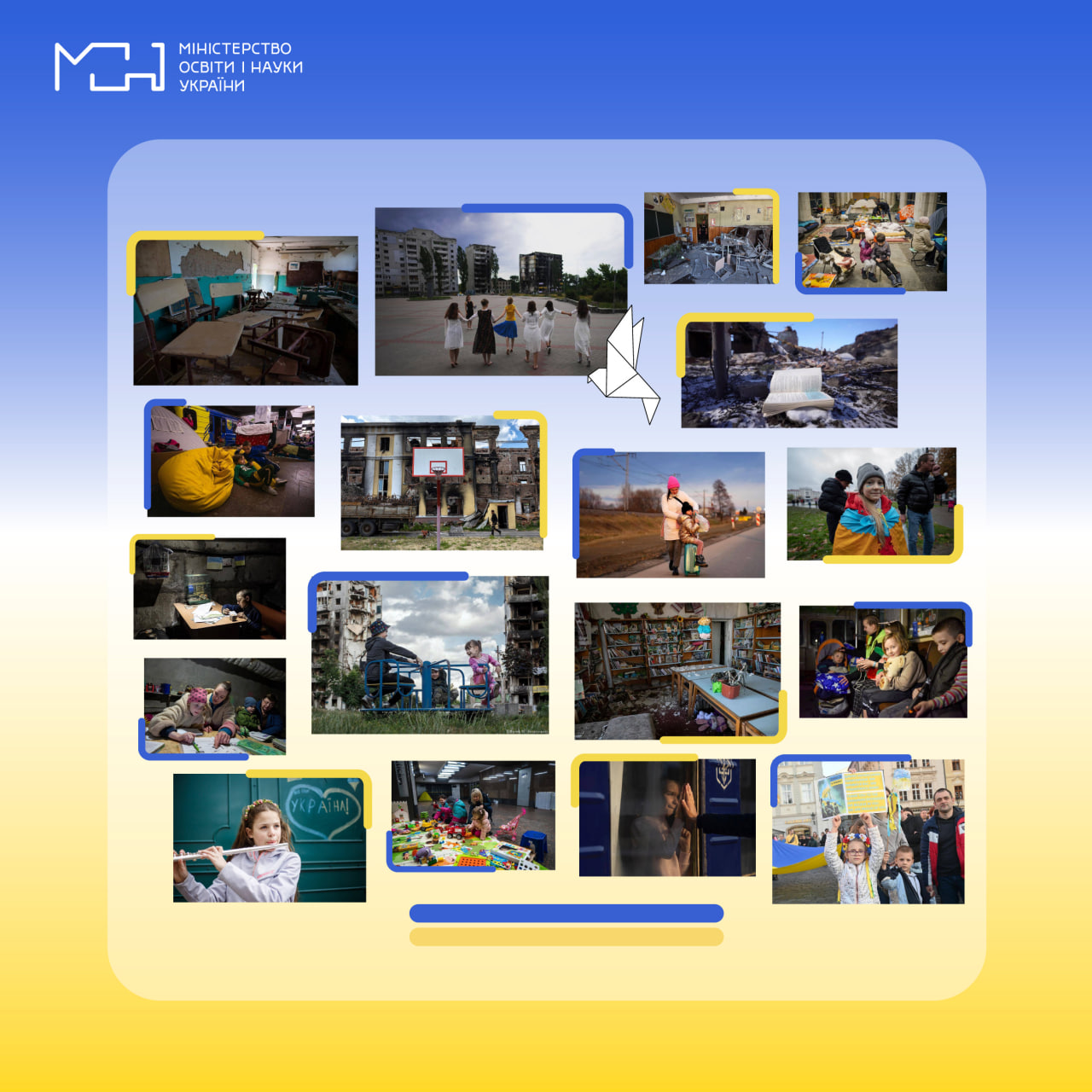 Освітяни, діти, учні, студенти, науковці – кожен українець став на оборону Батьківщини, кожен на свій фронт. Попри втрати, ми не зупинялися, ба більше – організовувалися і діяли. Ми стали опорою одне для одного, разом переживали біль та тривогу.