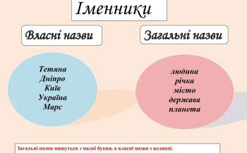 Гра виконана по типу класифікації та допоможе перевірити знання учнів з теми "Загальні і власні назви іменників". Завдання цієї гри - розподілити пропоновані слова на 2 групи: власні та загальні назви. Лівою кнопкою миші перетягніть слово вліво або вправо. Потім зможете перевірити свої відповіді за допомогою кнопки у правому нижньому кутку.