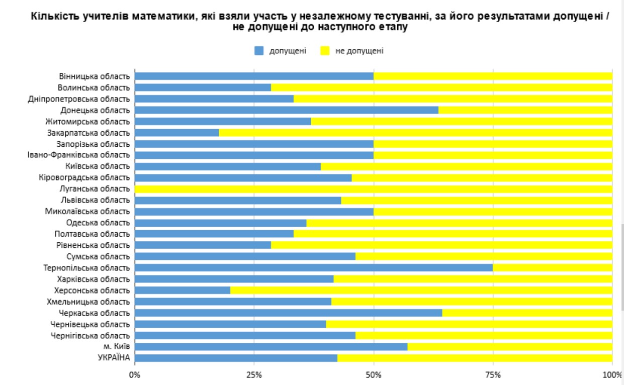 Перший етап сертифікації — незалежне тестування фахових знань і вмінь педагогічних працівників, яке відбулося 9 вересня, — успішно пройшли 180 учителів математики та 398 учителів української мови і літератури.