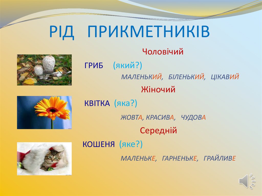 Ця гра у вигляді пазлів допоможе перевірити знання учнів на тему "Рід прикметників" та закріпити пройдений матеріал. Завдання гри - відкривати пазли лівою кнопкою миші, які відносяться до певного роду прикметників. Для цього необхідно обрати вгорі потрібну вкладку. Якщо слово обрано невірно, з‛являтиметься підказка.
