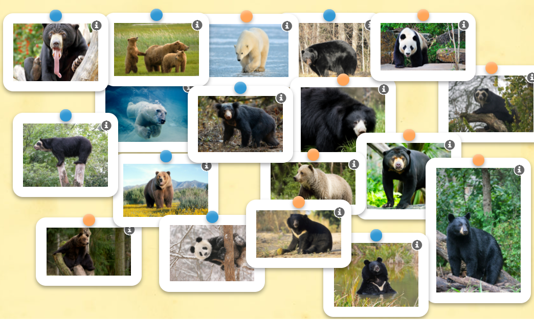 Ця гра полягає у тому, щоб поєднай у пари зображення близьких родичів ведмедів.