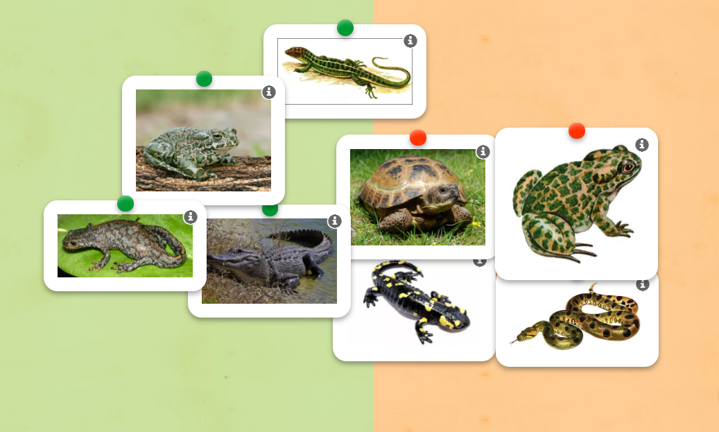 Ця гра полягає у тому, що необхідно розподілити правильно тварин по групах: земноводні, плазуни.